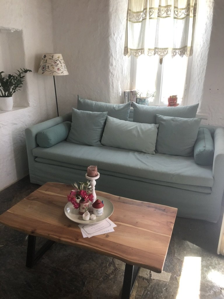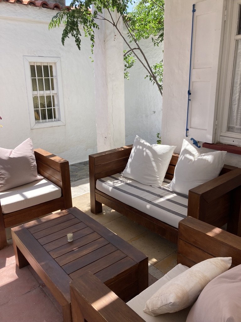 Vi bor lige ved havet, lige over smukke strande, på et fint lille pensionat hos Flora og hendes familie. De laver lækker, sund vegatarisk græsk mad til os og vi bor i deres hyggelige maisonetter og lejligheder.